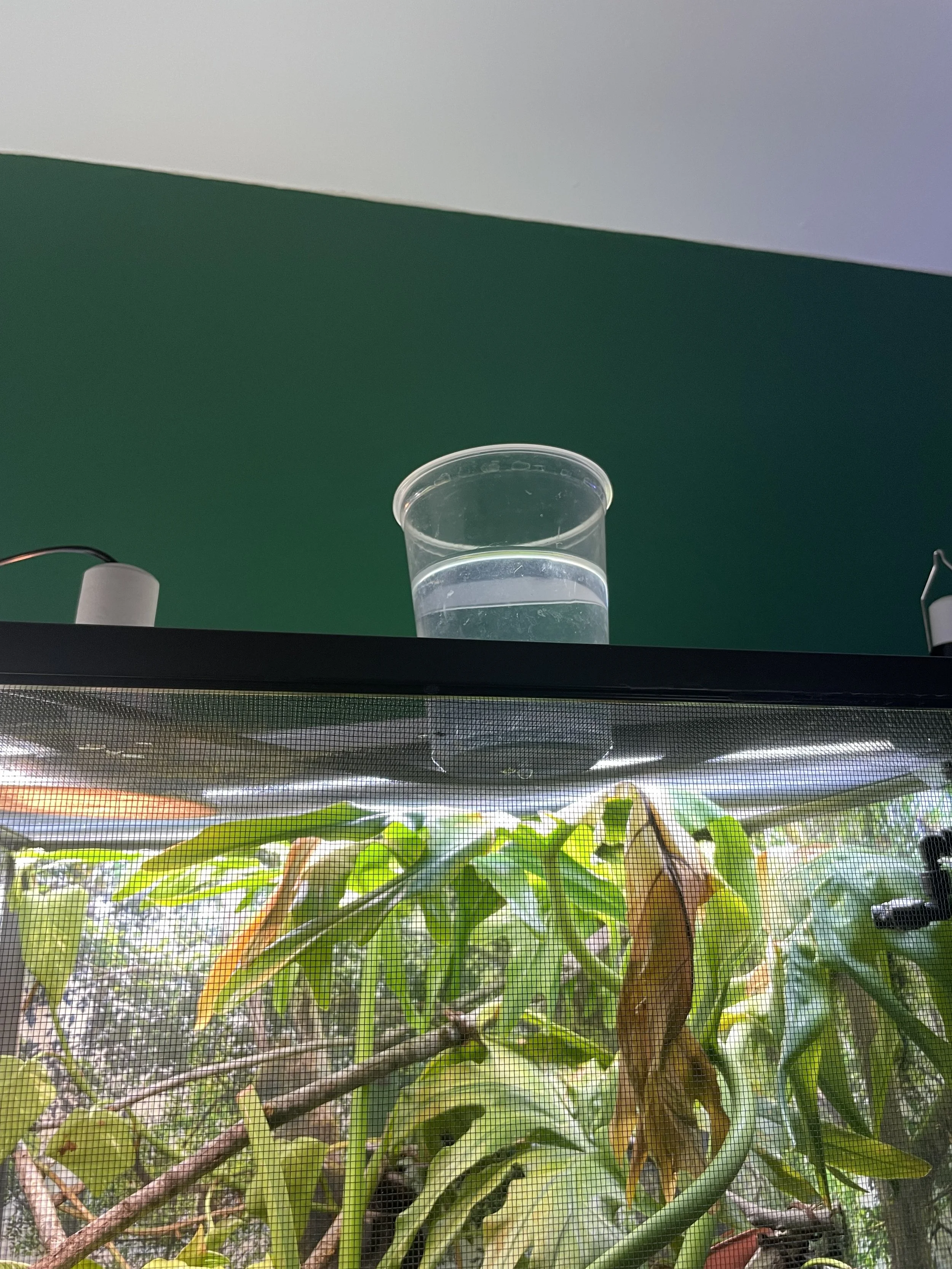 Let me start off by saying there are a lot of hydration methods when it comes to chameleons. I am going to share what has worked for me and what I recommend to new chameleon keepers I mentor. I hope once you learn more about chameleon care that you feel empowered to customize your hydration schedule based on your environment and specific chameleon. Chameleons are attracted to movement with their food but also with their water which is why we use things like misters, drippers, etc. instead of water bowls. Chameleons are shy drinkers so try not to freak out if you don’t see your chameleon drink. Avoid using water features like a waterfall which can be hard to keep clean and sanitary for your chameleon.